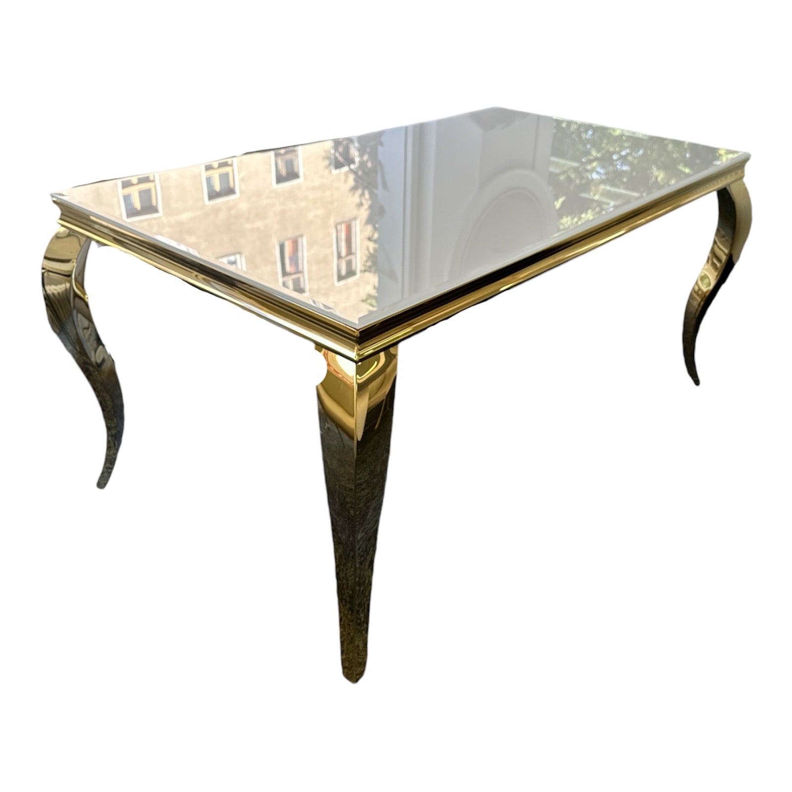 Dieser moderne Esstisch "CT53" besticht mit seiner milch weißen Optik und den eleganten goldenen Metallfüßen. Die modernen Akzente verleihen Ihrem Essbereich einen Hauch von Eleganz und Stil. Ein stilvolles Möbelstück, das Ihrem Zuhause das gewisse Extra verleiht.
