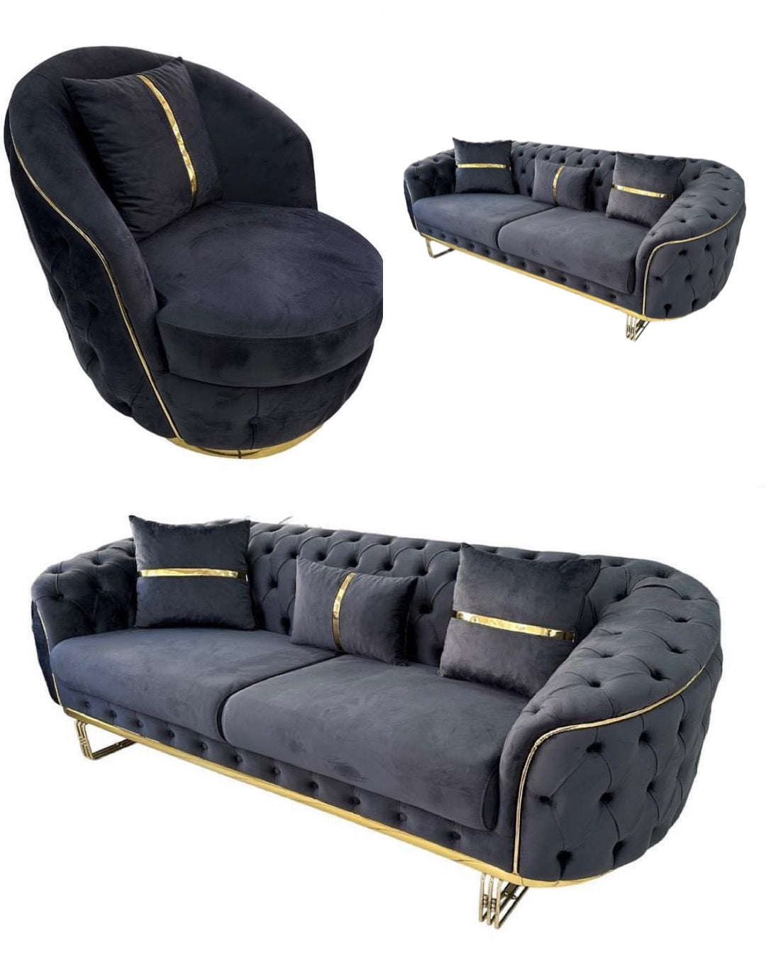 Das Sofa "Ceren" ist ein luxuriöses 3+3+1 Sofa mit einer robusten und hochwertigen Konstruktion. Dank der Bettfunktion bietet es zusätzlichen Komfort und die goldenen Details verleihen ihm einen Hauch von Eleganz. Genießen Sie den Luxus und die Stabilität des Sofas in Ihrem Wohnbereich.